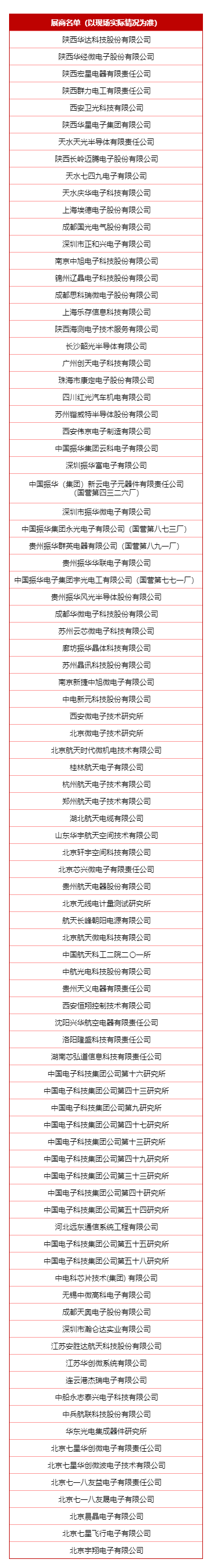 据悉,本届展会参展供方再创历史新高,报名逾200家。除传统的特种电子国家队:中国电子所属的振华集团等,中国电科所属电科产业基础研究院、电科芯片技术研究院等,航天科技九院等,航天科工的贵州航天电器、长峰朝阳电源等,航空工业的沈阳兴华航空、贵州天义电器等,兵器工业的214所等,中科院的中科新微特科技、中科格励微科技、中科亿海微等,各地方展团:如北京电子、四川电子、陕西电子等。同时还有好多新面孔:湖南芯弘道信息科技、长沙泰科阳微电子有限公司、昆山国力电子科技、中材人工晶体研究院、深圳市米诺电子、洛阳隆盛科技。
