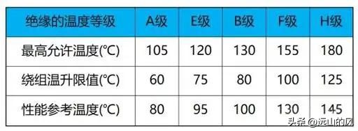 A级的最高允许温度为105℃
