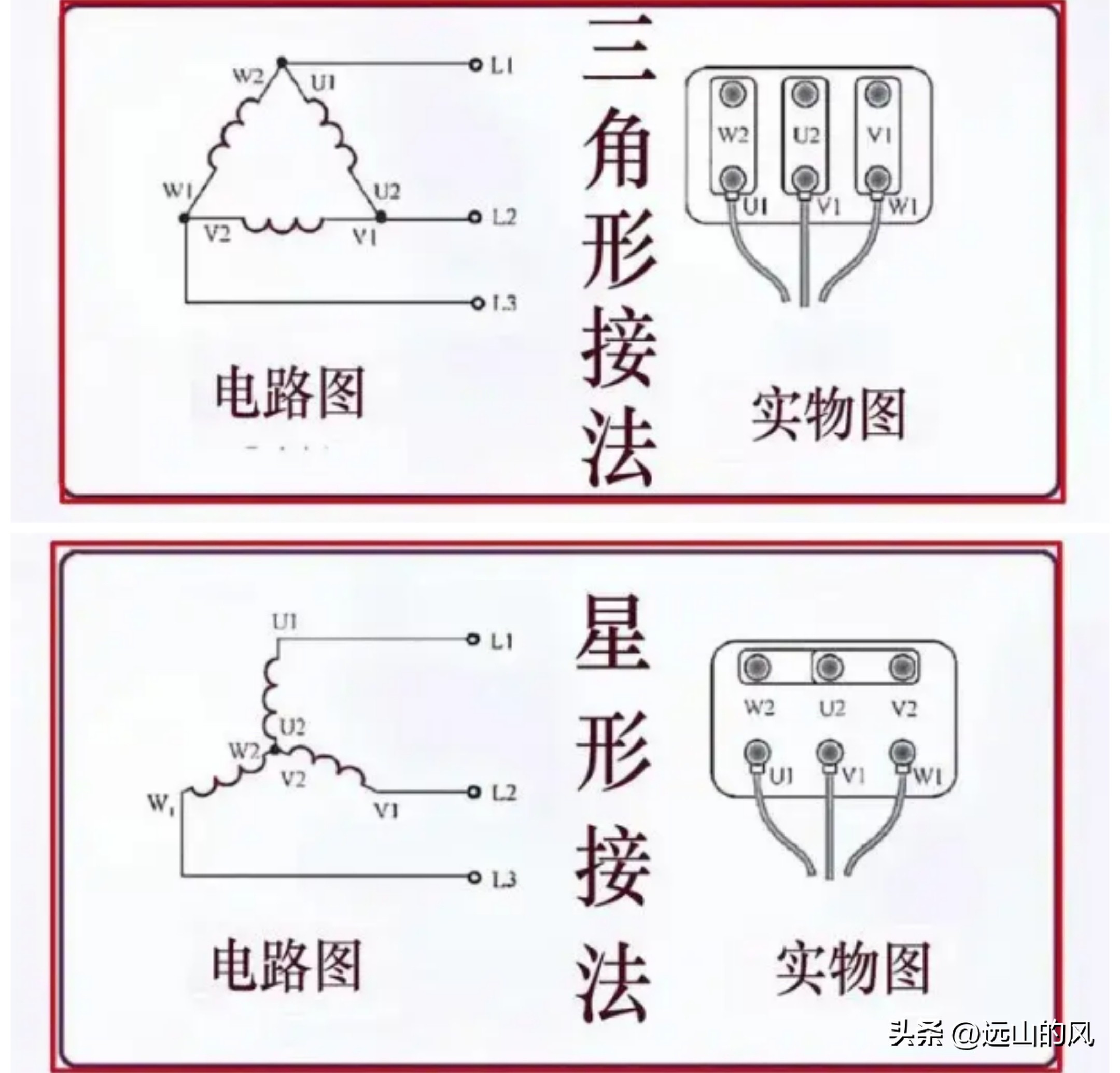 星形连接将三相绕组尾端连接在一起,首尾分别接入三相电源,三角形连接将三相绕组首尾相连,再将三个接点连接三相电源。